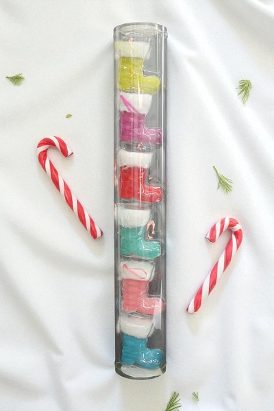 XMAS ORNAMENT FLOCKED BOOT SET 6 3.5 IN H